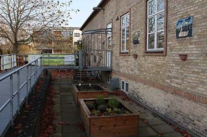 Det vil vi gøre ved at åbne mere op for fællesskaber i et biodiverst, indbydende frirum med bl.a. vilde blomster, krydderurter, blomster, træer foruden petanquebane med bænke, en udendørsscene, mobile pavilloner og ekstra bord- og bænkesæt til gavn for både de frivillige sociale foreninger og grupper, vores medlemmer, husets brugere og byens borgere.