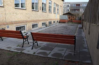 Petanquebanen bag huset er færdig og klar til at foreningerne kan tage et spil.